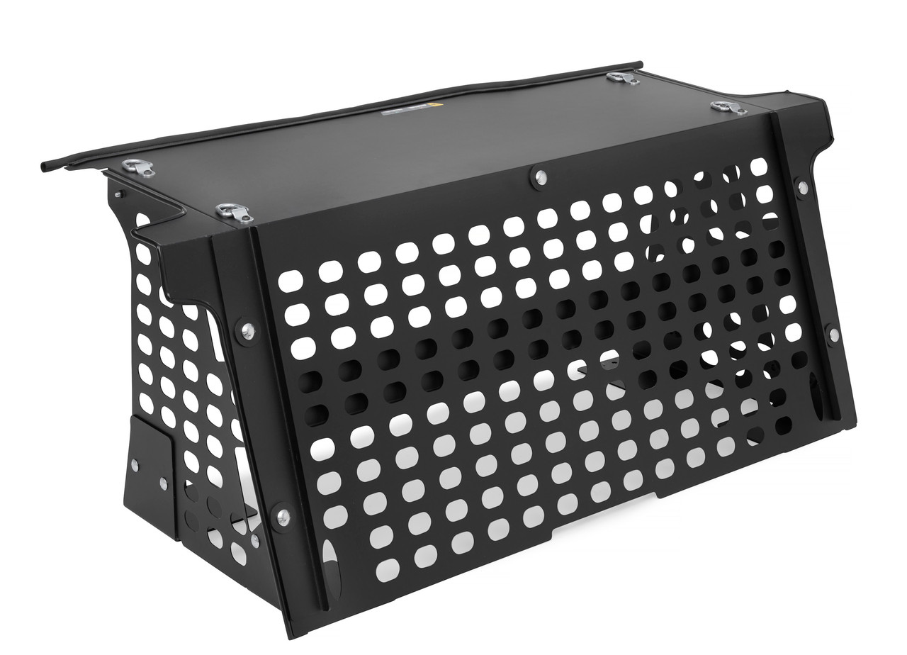 The Ford Bronco Security Deck Enclosure creates a large and lockable storage area. The lid secures shut using Tuffy's patented security system working in conjunction with the Bronco's locking tailgate. The front and side panels have a MOLLE grid designed into the surface for increaseed ventilation and infinite gear attachement organization options. Four D-ring tie downs come standard on the lid for securing extra grab bags and gear for your next adventure. The entire Tuffy Deck Enclosure is constructed using welded steel, heavy duty fasteners, and covered with a durable textured powder coat finish. The Tuffy Deck Enclosure does not rely on the wheel well to create an enclosed space adding an additional level of security. The vehicle power lock switches on the tailgate become disabled after a few seconds when locking the doors with the key fob so the enclosure remains secured while you're away. The patented design, quickly and easily installs to the vehicle floor with standard hand tools in the 3-door model with and without an OEM hardtop.