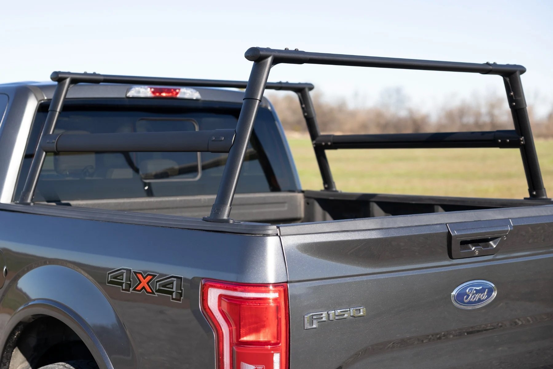 Upgrade your F-150 Bed. The F-150 Bed Rack from Rough Country gives you the flexibility to carry bulky cargo and outdoor equipment in your truck bed. It's just right for loading ladders, roof racks, bikes, and more with ease. And whether you're headed out for a camping trip or working under the sun on a job site, this bed rack keeps all your equipment close at hand.
