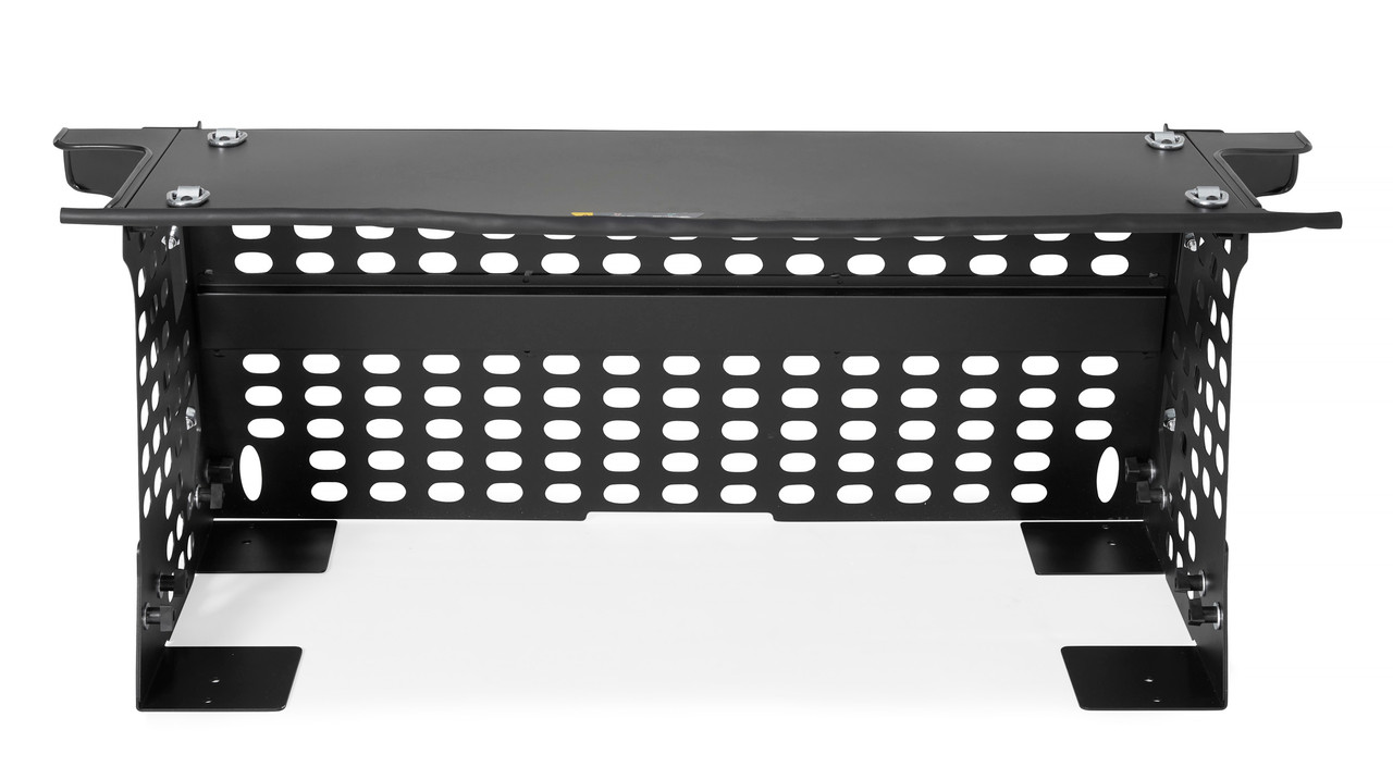 The Ford Bronco Security Deck Enclosure creates a large and lockable storage area. The lid secures shut using Tuffy's patented security system working in conjunction with the Bronco's locking tailgate. The front and side panels have a MOLLE grid designed into the surface for increaseed ventilation and infinite gear attachement organization options. Four D-ring tie downs come standard on the lid for securing extra grab bags and gear for your next adventure. The entire Tuffy Deck Enclosure is constructed using welded steel, heavy duty fasteners, and covered with a durable textured powder coat finish. The Tuffy Deck Enclosure does not rely on the wheel well to create an enclosed space adding an additional level of security. The vehicle power lock switches on the tailgate become disabled after a few seconds when locking the doors with the key fob so the enclosure remains secured while you're away. The patented design, quickly and easily installs to the vehicle floor with standard hand tools in the 3-door model with and without an OEM hardtop.