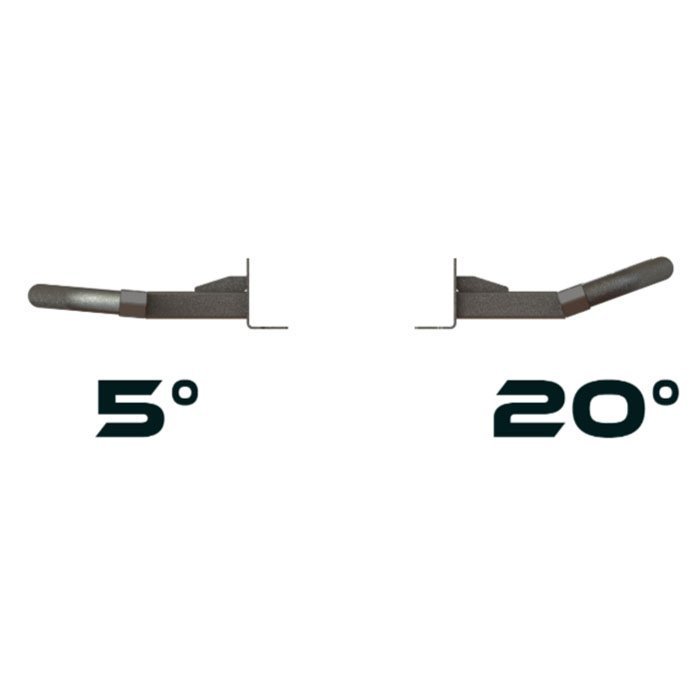 - 20 degree upward angle creates a low profile with maximum ground clearance