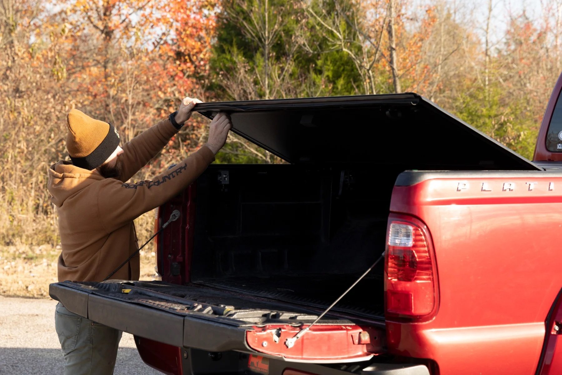 Full-Bed Access: With Rough Country's Tri-fold Flip-up Bed Cover, you can conveniently flip up the cover, allowing full-bed access without the hassle of removing the cover.