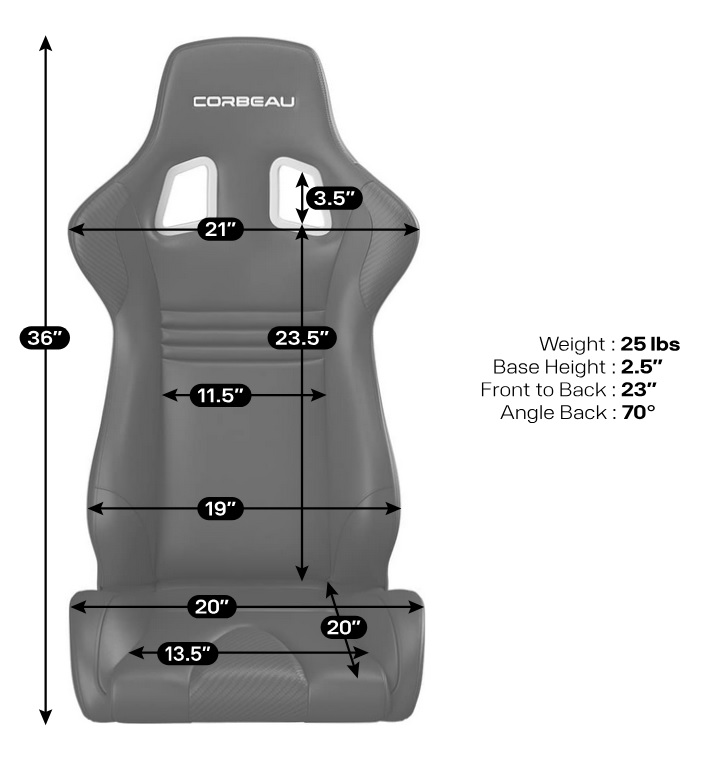 Using Corbeau’s vehicle-specific brackets, the Evolution X can be installed in a wide variety of cars, trucks, and SUVs.